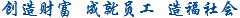 • ·創造財富是基礎,是成就員工、造福社會的前提,是出發點。在創造物質財富的同時創造精神財富,在造福當代人的同時福澤后代。
